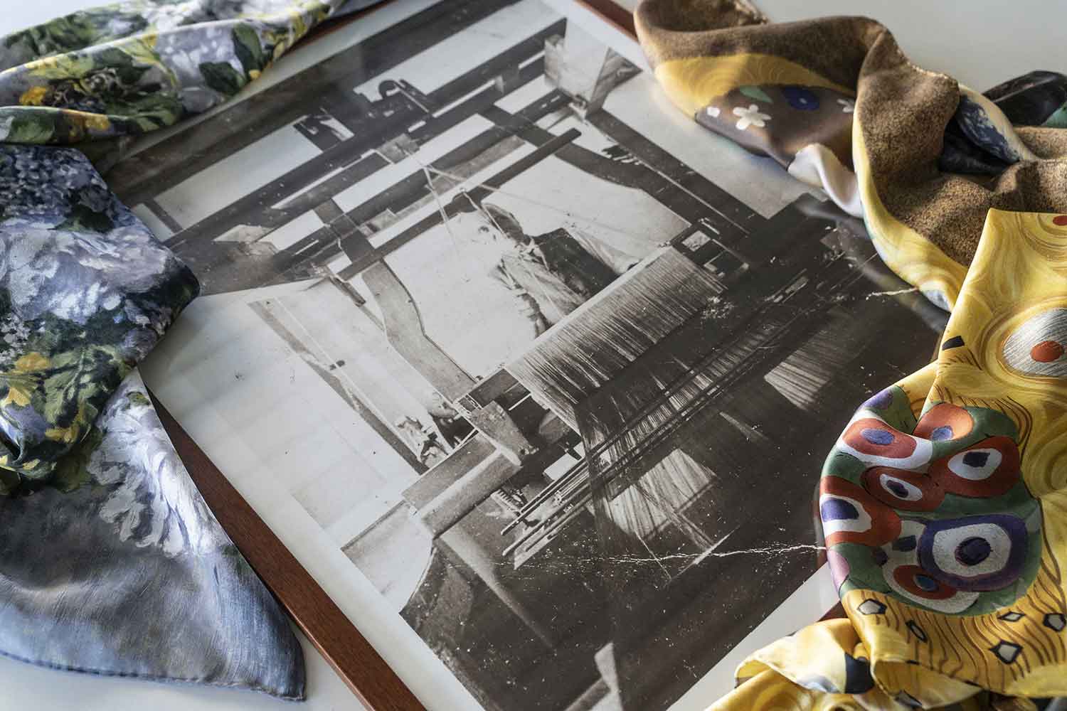Opened in via Milano in Como in 1866 by the hand-weaver and son of weavers Giovanni Bianchi, with its looms and long tables for hand printing silk and chiffon pieces, the workshop soon became a symbol of Como's history and weaving.