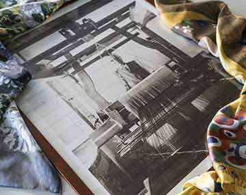 When entering the Bianchi Giovanni in Via Oltrecolle in Lipomo you feel you are retracing the history of Como's silk weavers. From the moulds, immersion blocks for printing in use at the beginning of the century, to the collections of scarves and ties printed on precious silks, to the paintings made on silk for the Metropolitan Museum, the British Museum, or the Hundertwasser Foundations.